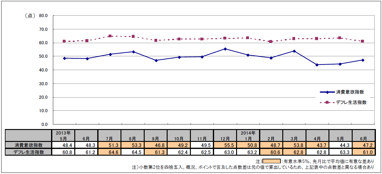 ●6月は [消費意欲指数= 47.2点][デフレ生活指数= 61.0点]