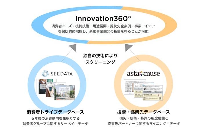 博報堂DYグループの株式会社SEEDATA(シーデータ)(本社:東京都港区赤坂、CEO:宮井弘之)と株式会社アスタミューゼ(本社:東京都千代田区大手町、代表取締役社長:永井歩)は、企業のオープン・イノベーションを加速するための分析情報ライブラリ「Innovation360°」を共同で開始いたしましたのでお知らせいたします。