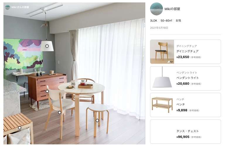 本ソリューションを活用した新機能を、ルームクリップが提供するサービスにおいて2024年4月から段階的に開始しています。この機能では、ユーザーがルームクリップに投稿した写真を自動で画像解析してアイテムを特定し、取り扱いのあるECサイトのURLリンクをカード形式で表示。写真を閲覧したユーザーの利便性向上に寄与しています。