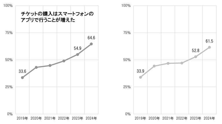 ●スマートフォンからのチケット購入や店舗予約が増えた人は6割超に。生活行動のモバイルシフトも進んでいる。