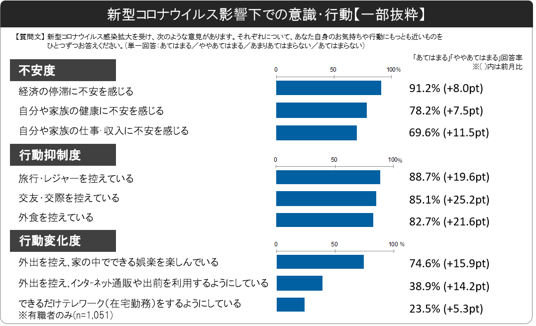(調査実施は4月2-6日 ※政府の緊急事態宣言前、対象は首都圏・名古屋・阪神圏の20~69歳の男女1,500名、一部調査項目については3月より実施 調査概要はPDF版参照)