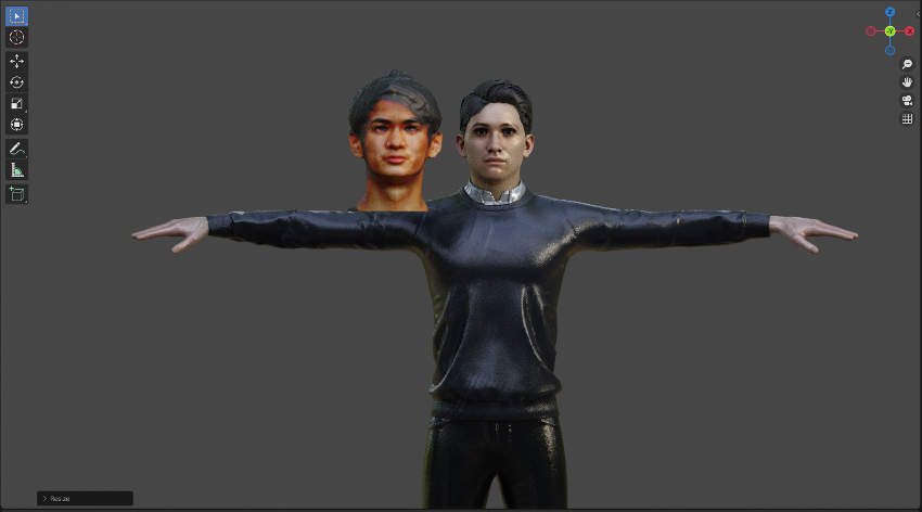 [5]で配布されている男性の身体を利用します。今回作成した頭部の3Dモデルと配布されている男性のモデルについて、Blender上で頭部の差し替えを行いました。