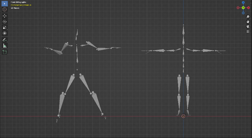 ダンスモーションの適用には、注意が必要です。EDGEで出力されるフォーマットはSMPLという形式のファイルです。動かしたい3DモデルはMixamoでリグ入れしたものであり、ボーンの情報が異なっています(下図:左がSMPLのボーン情報で右がMixamoでのボーン情報)。ですから、ダンスモーションのボーン情報と踊らせたい3Dモデルのボーン情報を手作業でリンクさせました。その際に使用したのがSimple-Retarget-Tool-Blender
