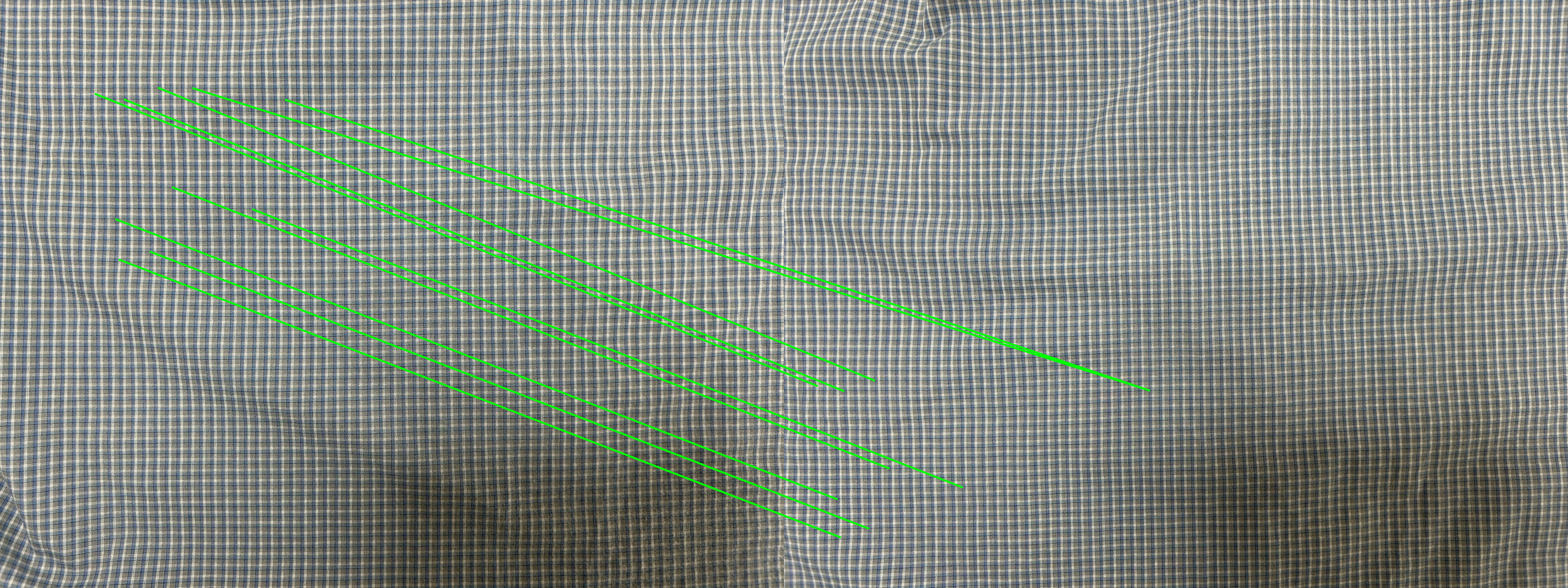また、以下は特徴点マッチングの結果です。ここでは特徴点マッチングの信頼度を基にフィルタリングして、トップ10の結果だけを表示しています。このマッチングがうまく行けば、カメラの位置を正確に復元できます。