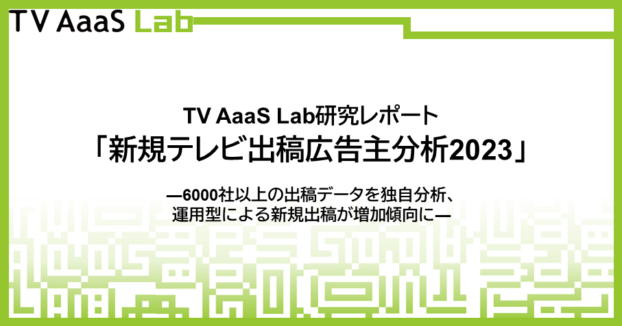 TV AaaS Lab研究レポート「新規テレビ出稿広告主分析2023」 ―6000社以上の出稿データを独自分析、運用型による新規出稿が増加傾向に―