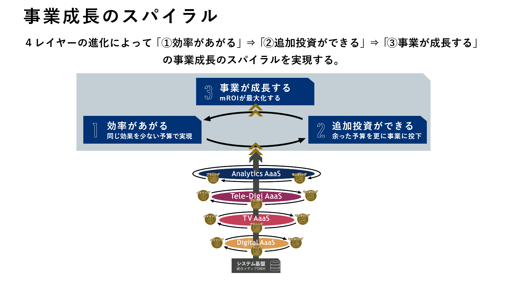 これまで分断され、かつ目に見えない要素が多かったため、広告メディア活動全体からみると無駄も生じていたという側面もあるかもしれない。この「無駄」を排除してメディア効果を最大化し、事業成果に直接的に貢献していく、ひいては広告主の事業成長に貢献していくのが『AaaS』モデルなのです。