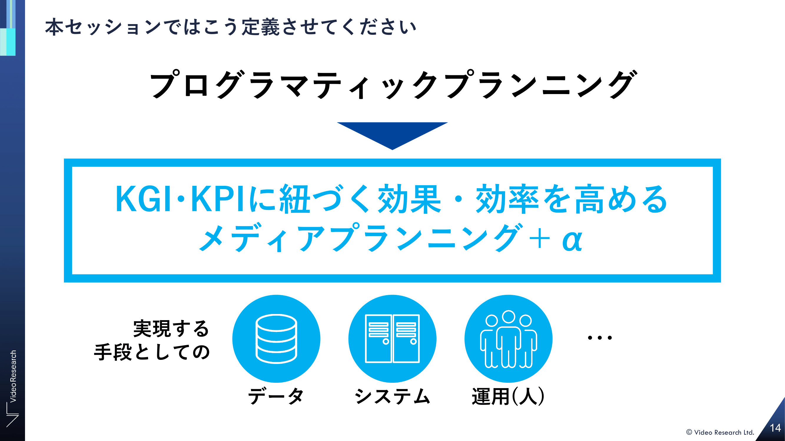 さまざまなデータやシステムを活用して行う「プログラマティックプランニング」について、総合広告会社、運用型テレビCMサービス企業、広告最適化テクノロジープラットフォーマーというそれぞれの立場で最前線で活躍している登壇者3名と、データ&システム会社であるビデオリサーチ社でディスカッションしました。「テレビCMは効果が見えづらい」という言葉を見聞きすることがありますが、絶賛進化中であることがわかるセッションです。その一方で、どんな課題を抱えているのか、というところまでエピソードを交えて踏み込んでいきました。※この記事は「VR Digest+」に掲載されたコンテンツをビデオリサーチ社の許諾を得て転載したものです【もくじ】