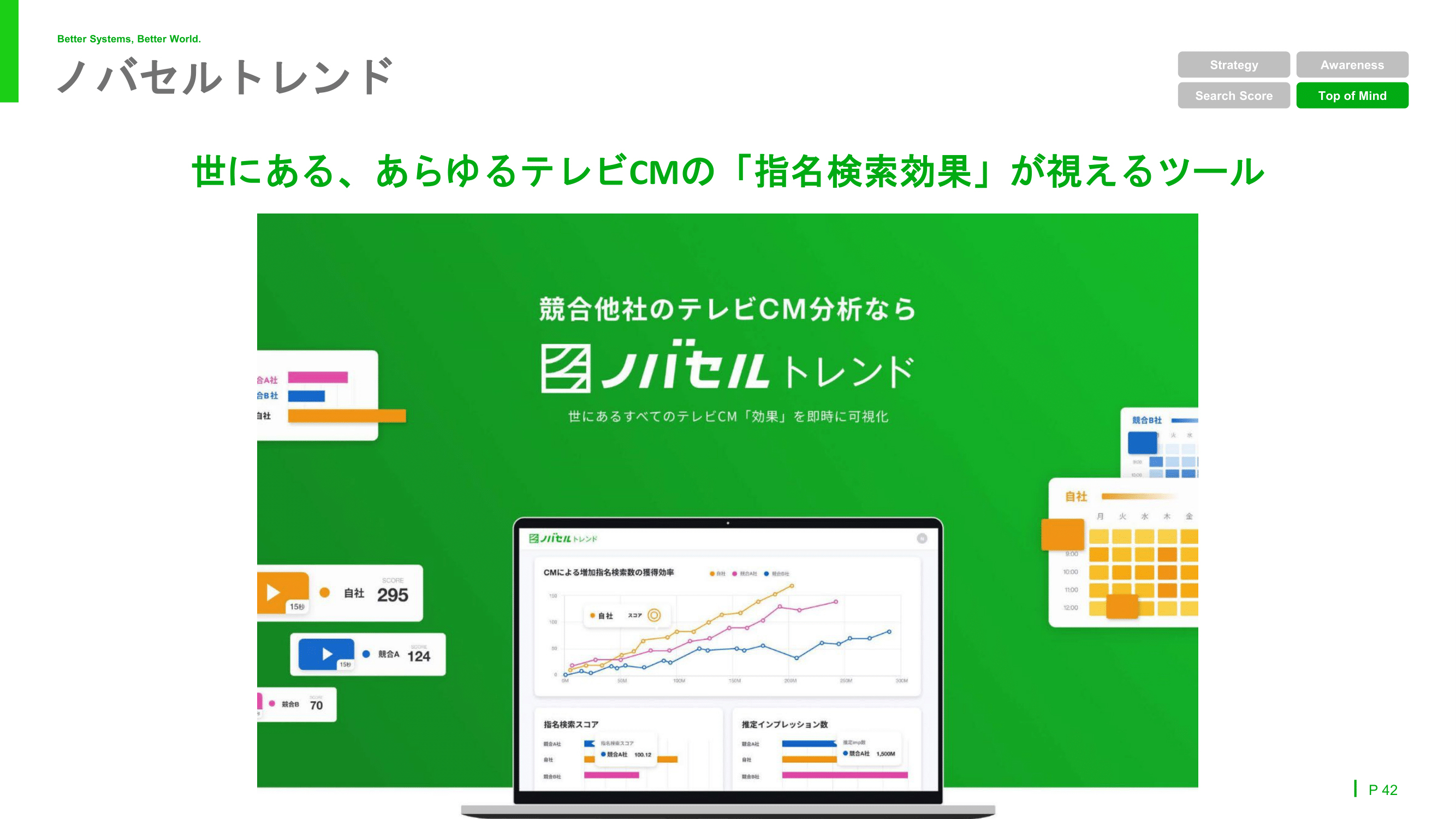 各社の取り組みセッションでは、プログラマティックプランニングが求められる背景についての考察が進められました。生活者が多様化しているなか、データの拡充によってターゲット解像度が上がっています。その一方で、メディアや広告主のKPIも多様化、デジタルデータの増加によってファネル全体のコンディションを描くことができるようになった分、ファネル全体を見なくてはならないため、プランニングの難易度が上がっていることが業界の課題となっています。飯塚氏は、プログラマティックプランニングは、それらの課題をデジタルの力で革新する手法として注目されるようになっていると分析しています。そのアンサーとして、株式会社博報堂DYメディアパートナーズでは「AaaS(Advertising as a Service)」を提唱し、広告メディアビジネスのDX化を提案しているとのこと。これは、システムを基盤にモニタリング、プラニング、バイイングのサイクルを回しながら、広告主のKPIにコンサルタントが寄り添っていく総合メディア運用のサービス。エグゼキューションからマーケティングといったフルファネル領域に対応し、事業成果の最大化に寄与する「Marketing DX」につなげられるのが特徴です。「AaaS」では、テレビ広告について、「枠」から「効果」へと価値転換することを標榜しています。その実現において、メディア間の取引・評価指標が分断し、さらに広告主のKPIとメディア指標も分断している状況がありました。しかし、投資を行い、散らばっていたデータの集約・統合をすることで、メディア横断での統一指標、広告主KPIとの常時連携を実現できる素地ができ、メディア広告ビジネスのPDCAが回せるようになったと語ります。飯塚氏は、「これまで、広告やマーケティングは“費用”という考え方が多かったが、費用が効果を生み出すとわかると、“投資”という考え方になる」とAaaSを推進する背景を語りました。さらに、「『枠」から『効果」という価値転換に関して、広告主は元より『効果」が欲しくて広告を出稿しているのは変わらないが、かつてはデータが十分に揃っておらず、効果が表現しきれないことに忸怩たる思いもあった。今はダイレクトにデータをつなげることにより可能になることが増え、広告やマーケティングに投資することで、経営が回っていくという感覚が出てきた」と続けました。続いてノバセル株式会社の田部氏は、事業主はテレビCMの正しい効果計測や投資判断ができていないのではないかとし、事業会社ラクスルでの出稿ノウハウを活用した運用型テレビCMサービスを開発。デジタル広告において、脱3rd Party Cookieにより追跡型の広告が難しくなる中で、指名検索の重要性がより高まると予測し、検索数を伸ばすことに目的を特化させた「ノバセルトレンド」を開発した、と説明しました。これは、テレビ出稿タイミングと合わせたネットでの検索アクションを計測、「瞬間指名検索数」を可視化するサービスです。指名キーワードの検索によるCVRは、一般キーワードの検索より約12倍も高いという結果もあり、出稿した放送局や時間帯ごと、クリエイティブごとの指名検索数をトレースして運用のPDCAに活かすことで効果・効率を高めることができる、と説明しました。多様化するデータとどう向き合う?そしてバイイングとの断絶は?