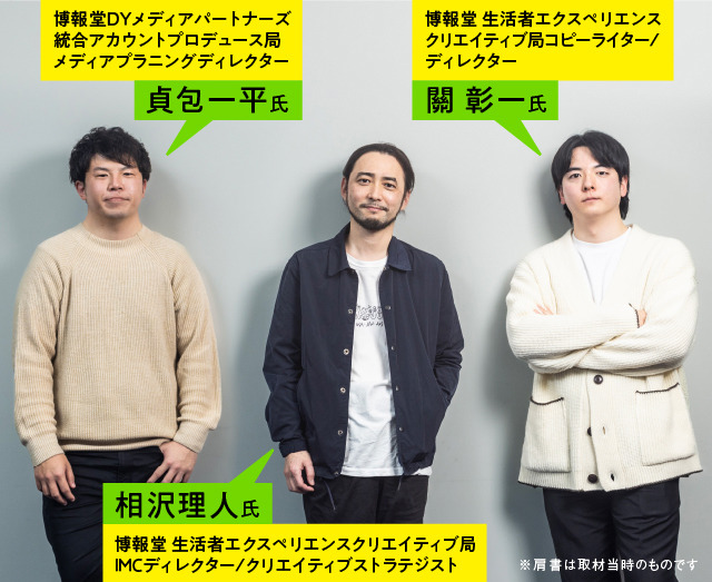 貞包一平氏:前職でのデジタル領域のプラニング経験を経て、テレビデジタルを中心とした統合メディアプラニングに従事。データ起点での戦略構築、メディアプラニング、効果検証設計に強みを持ち、ブランディング業務からダイレクト業務まで幅広い課題に対するメディア領域をリードする。