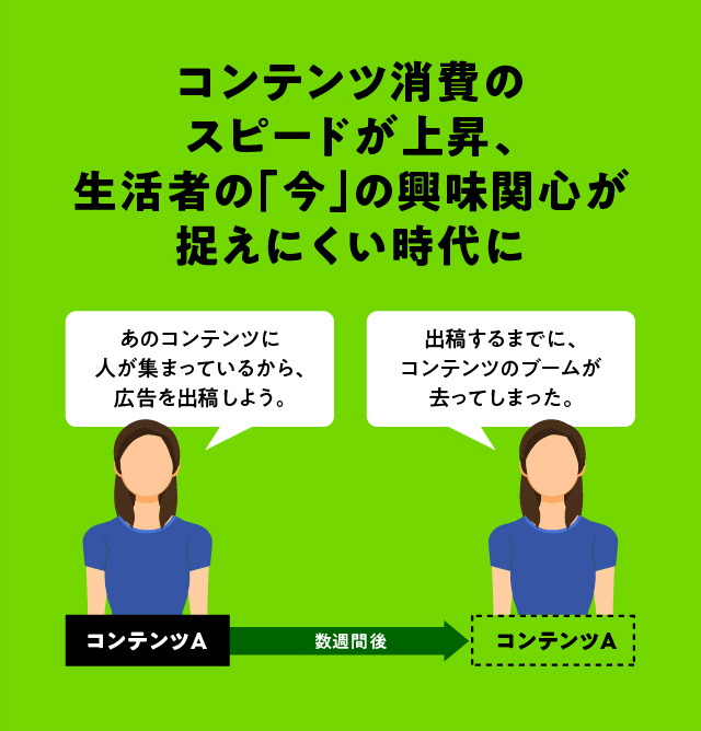 マスメディアからSNSまで生活者が時間を費やすメディアの選択肢は広がり、コンテンツ消費のサイクルは高速化している。