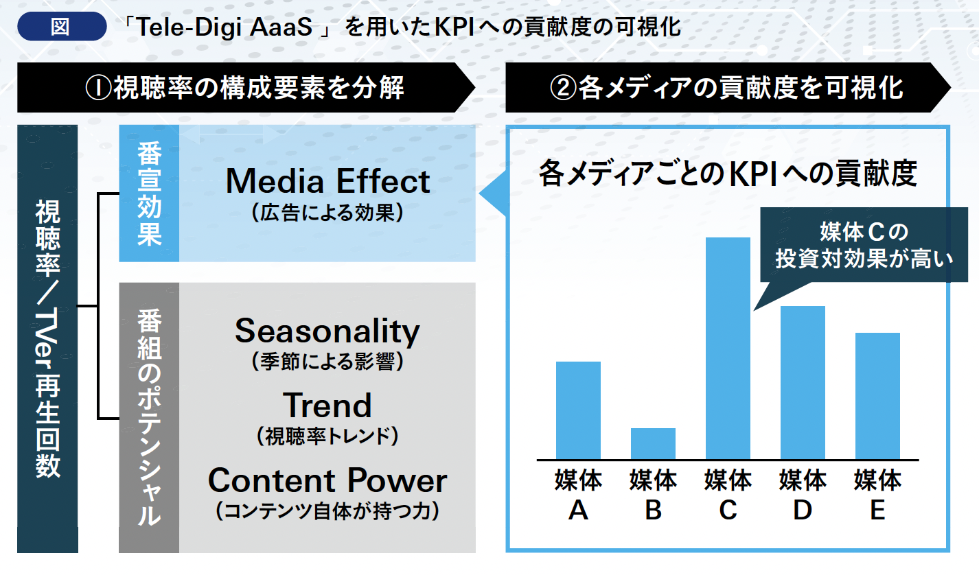 「Tele-Digi AaaS」は、AaaSが保有する各メディアの広告効果ノーム値やKPIに関する長期的なトレンド、さらには季節性なども加味したモデリングができるので、精緻な分析が可能です。結果として、テレデジを横断してどのメディアがリアルタイムの視聴に効果的に作用したのか、ある程度明らかにできたと考えています。これはメディアの選定や投資配分の実現にも繋がります。