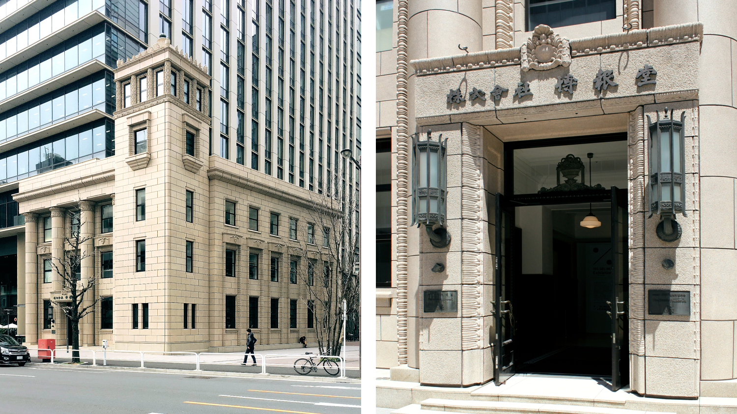 HASSO CAFFÈ with PRONTOがある建物は、株式会社博報堂が1930年に「旧本館ビル」として竣工した建築を復元した建物です。設計は、「様式建築の名手」と称された建築家・岡田信一郎氏によるもの。古代ギリシャ・ローマの建築文化とその頃流行していたアールデコの趣を取り入れたものとして当時は評判になりました。