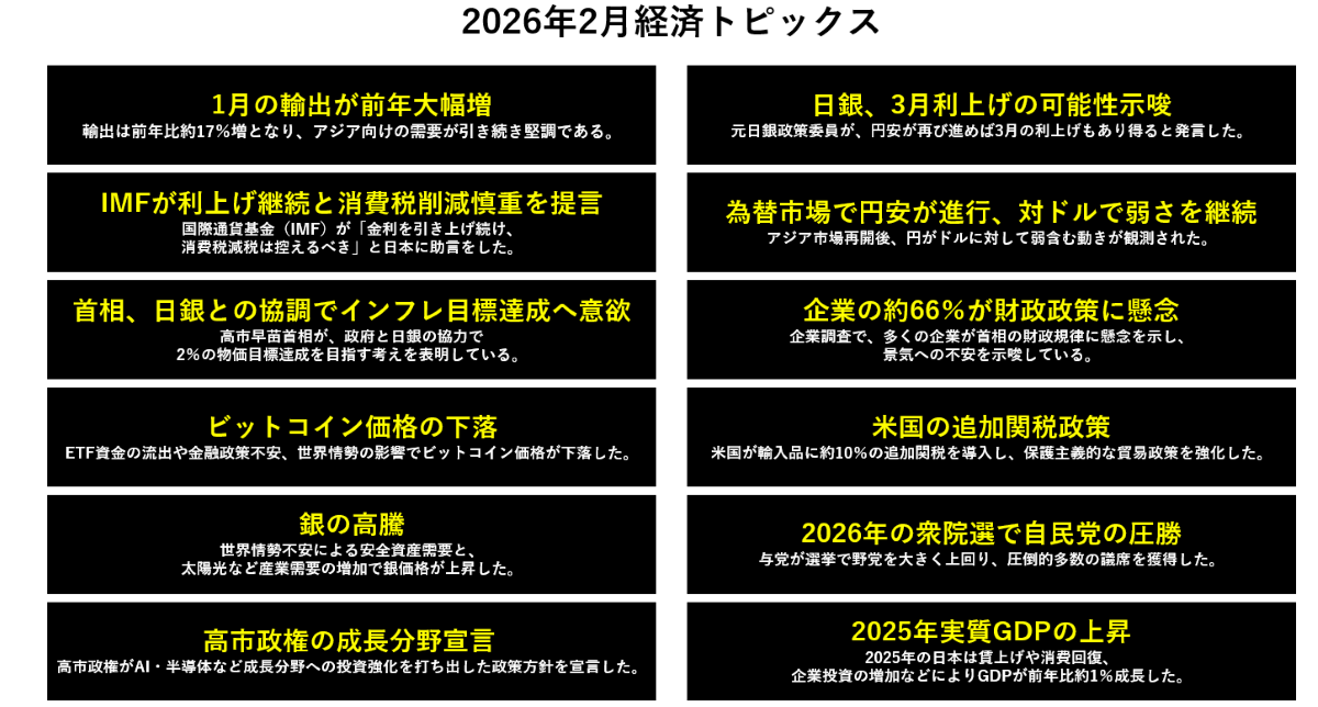 2026年2月の日本経済は、成長率こそ0%台後半と高くないものの、賃上げと物価上昇の鈍化を背景に、実質賃金がようやくプラスに転じつつある局面に入りました。その一方で、日銀はマイナス金利を脱しつつも短期金利0.75%程度を維持し、追加利上げのタイミングを慎重に探るなど、市場では段階的な利上げが続くとの見方が強くありました。こうした中、衆議院選挙や政権の成長戦略が「次の一手」として意識され、候補者が物価対策・賃上げ促進・財政規律・日銀との関係などをどう位置づけるかが、日本経済の方向感を左右する重要な論点にもなりました。このような状況下で、実際生活者は金融ニューストピックについてどれくらい関心を抱いているのかを全国1,000名にWEB聴取しました。