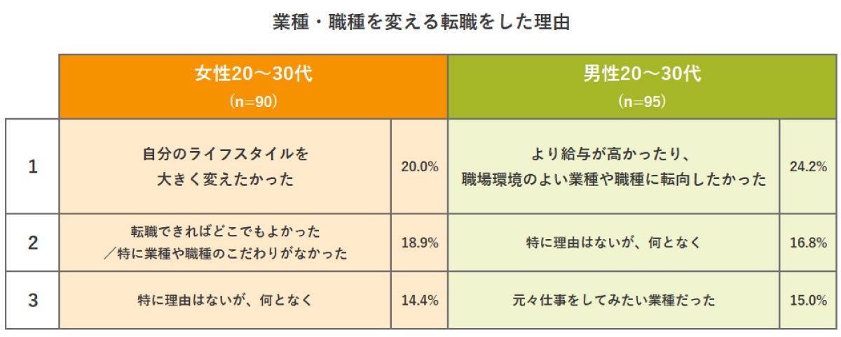 なぜ、業種も職種も変える「ジャンプ転職」が多いのでしょうか。その理由を紐解いていくと、男女での傾向の違いが見えてきました。