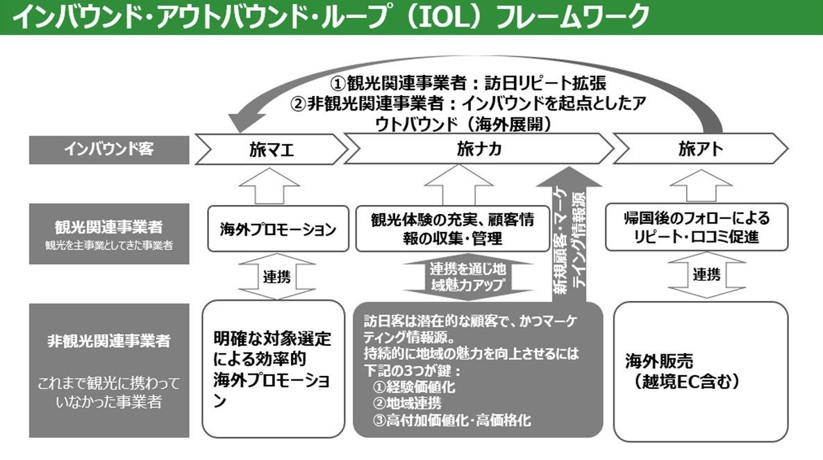 そうした全体像を考えると、今後の日本が取るべき戦略としては、海外から来てもらい、またこちらからも海外に行くというループを生み出し、そこから刺激を受けて活性化するしかないだろうと考えた。もともとはそうした非常にネガティブな理由でインバウンド・ビジネスの必要性を訴え始めました。