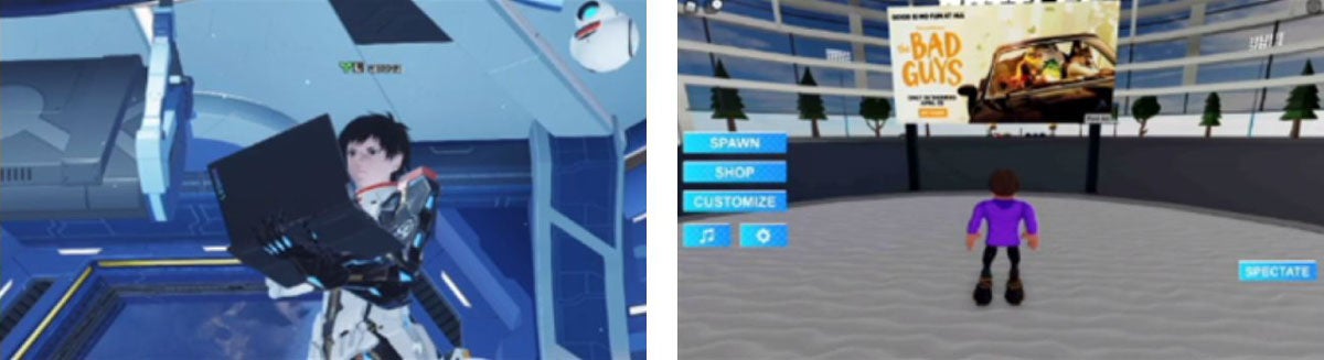 私が立ち上げたarrovaでは、こうした新たな広告表現の確立に向けて様々なプロダクトの開発・買い付けを行っていて、足元ではヴァーチャル空間内でのサイネージ広告事業を行っています。これはリアル空間の屋外広告のように空間に溶け込んで広告を見せるもので、ユーザーの体験自体を妨げません。デジタルならではの強みは、ユーザーが広告を見ているかどうかを計測できること。これらはデジタル広告とリアル広告の中間のようなイメージなのですが、本来我々がやろうとしていることは、メタバース内でアバターやアイテムなどを通じた新しいコミュニケーションの創造です。例えば新作映画のキャラクターのアバターにユーザーが興味を持って話しかけると内容を教えてくれたり、実際の商材をゲーム内のアイテムとして利用してもらったり、サイバーパンクな近未来の空間に新しいラインの服を着たアバターを登場させてブランドが将来提示したい世界を伝えたりと、能動的なコミュニケーションや3D空間での体験性を付与することができます。