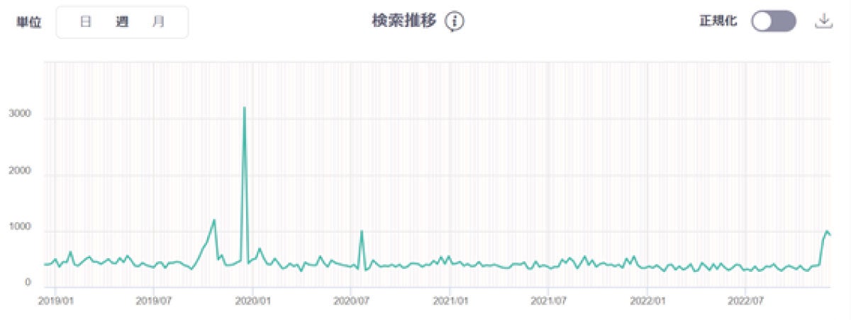 不思議なのは、すべてのスポーツイベントで検索ボリュームが上がるわけではないこと。特に大きな国際大会が行われた2021年は検索数としては目立ちません。仮説として考えられるのは、「日本が勝利すると、会場外で大騒ぎするファン」という画が「にわか」検索のトリガーなのでは、ということです。