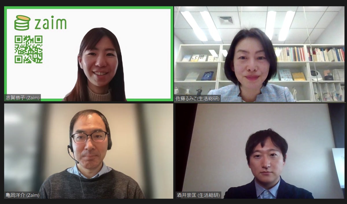 生活総研では、これまでも数々のデータホルダーと共同研究を行ってきましたが、今回は株式会社Zaimのみなさんと家計簿データの時系列変化を分析することで、コロナ禍以降に生まれた生活者の消費スタイルの変化、その裏側にある「意識」について考察します。株式会社Zaimの志賀恭子氏、亀岡洋介氏と、生活総研の酒井崇匡と佐藤るみこの対談です。