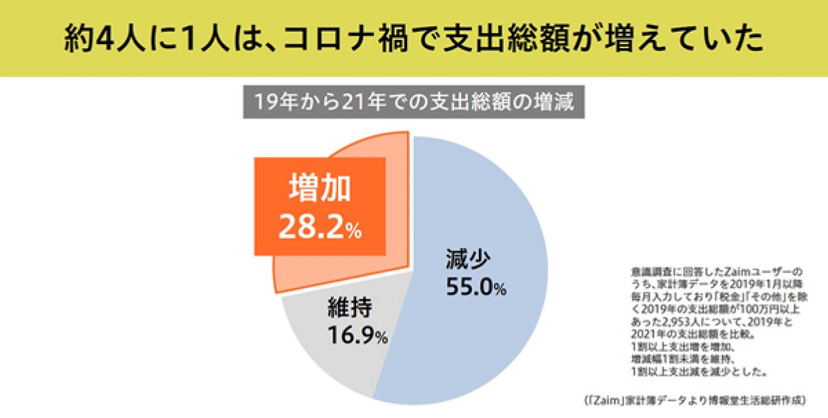 しかしその一方で、約4人に1人(28.2%)は支出総額が1割以上、逆に増加していたのです。