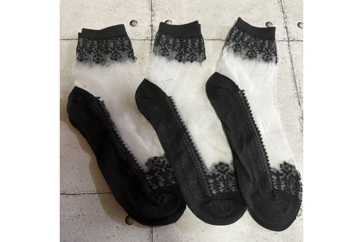 クーラー冷えを感じやすい足元を温める方法として、リネン素材などのひざ掛けや夏用の薄手のレッグウォーマーを活用することは定番かと思いますが、最近は夏に「シースルーソックス」を着用する女性が増えているようです。写真のように、靴下のかかと~指先といった底部分は普通の靴下の素材を、人に見える足首の部分は透け感のある素材を使用しています。