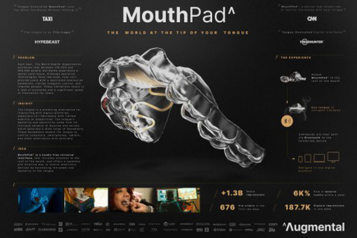 グランプリだったMouthPad^はMITのラボから生まれたデバイスです。両手に障害のある人たちが、回路の埋め込まれたマウスピースを上顎にはめ舌で操作します。