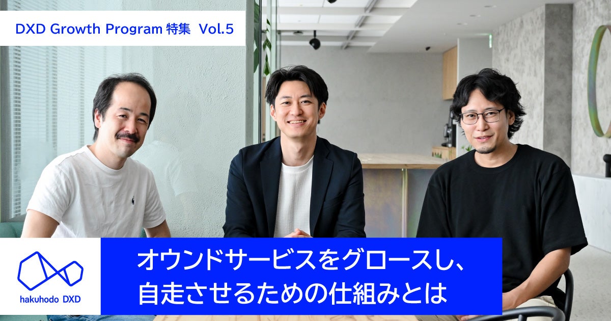 本連載では、「DXD Growth Program」の意義や支援内容など、計6回にわたって詳しくご紹介します。今回はVol.5として、オウンドサービスをグロースさせ、自社で自走化する際に必要な仕組みをテーマに、メンバーの千葉悠人、柳沼優樹、高井新平の3名に聞きました。