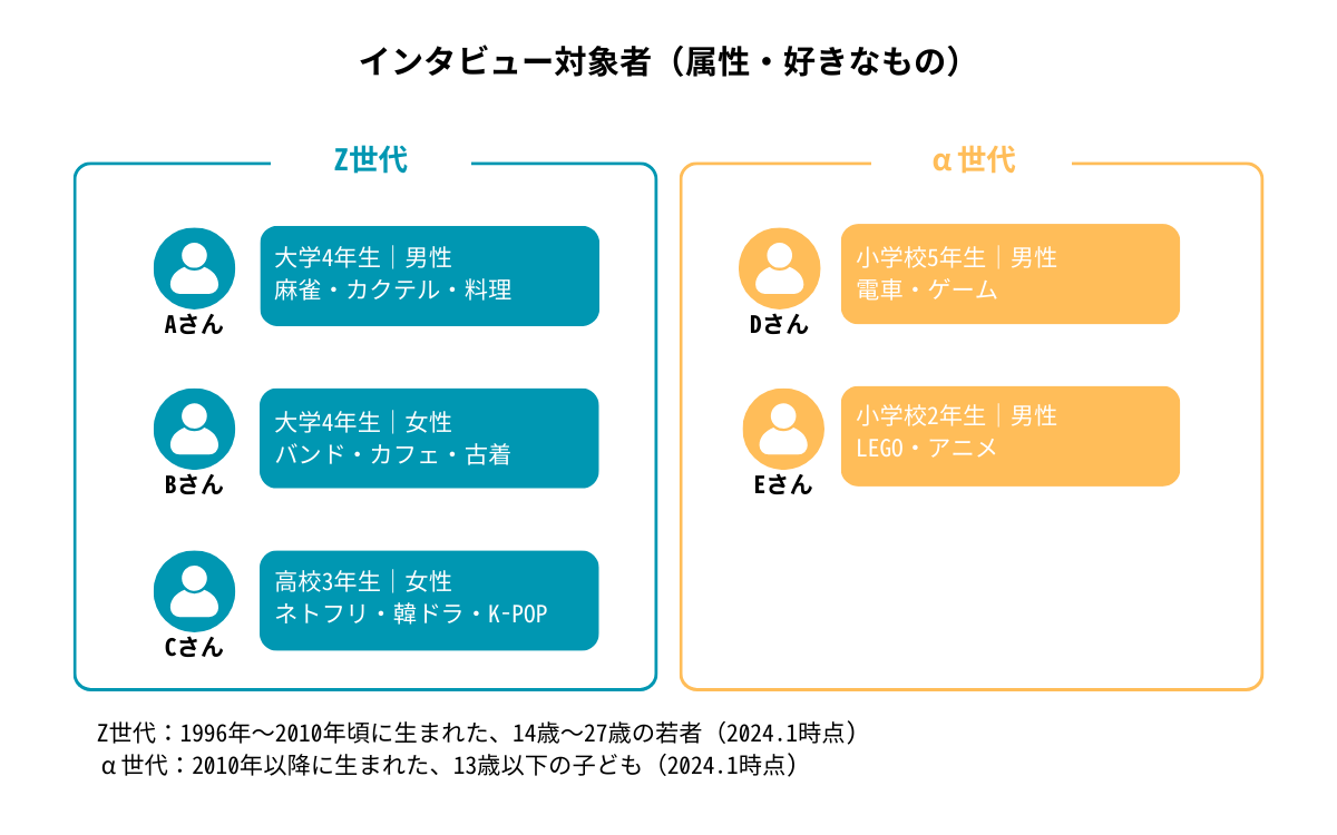本コラムでは、その問いを起点に若者へインタビューを行い、好きなもの・ことへの関わり方や情報の広がり方について、その実態と特徴について探ります。インタビューには、Z世代に同じデジタルネイティブであるα世代も加え、これからの若者についても考察していきます。