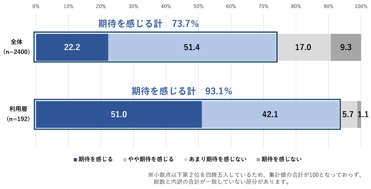 AI技術全般への期待について聞いたところ、AIに「期待を感じる」との回答は全体で73.7%。