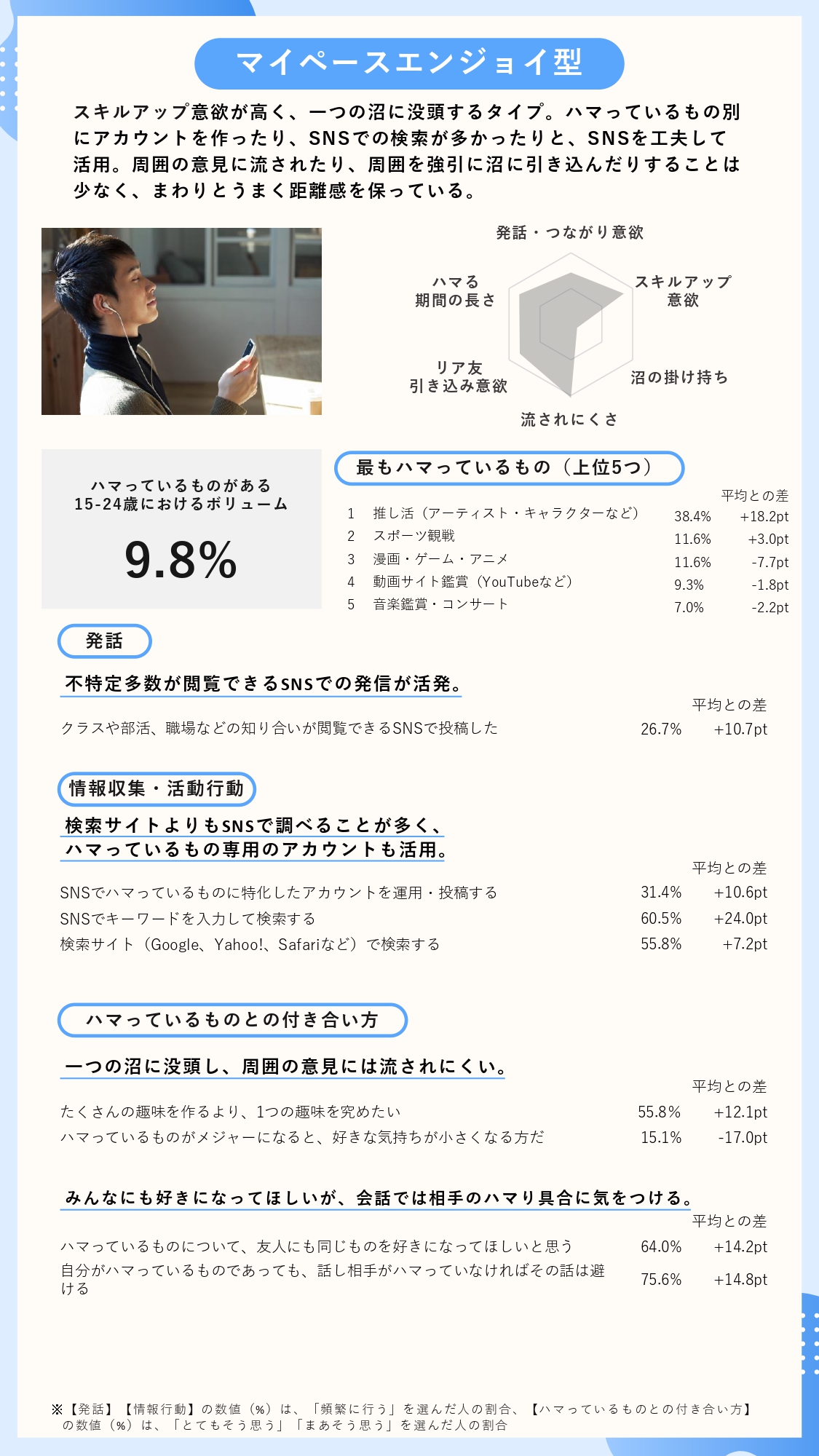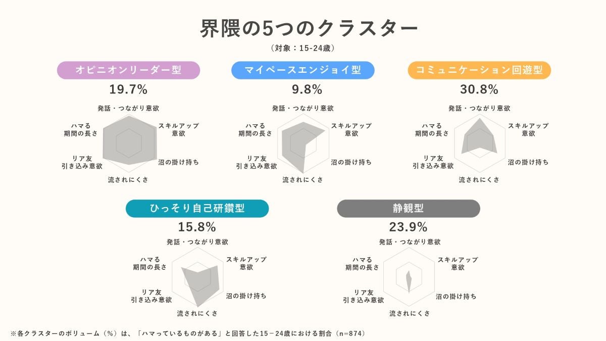 ※2 各クラスターのボリューム(%)は、「ハマっているものがある」と回答した15-24歳における割合(n=874)