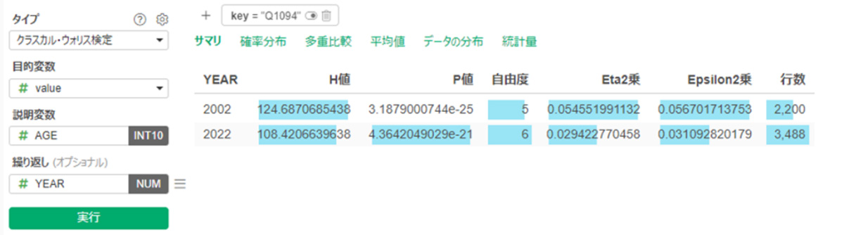 (2022年は2002年に比べ年代による傾向の違いを示すEpsilon 2乗値が減少し、消齢化していることがわかる)