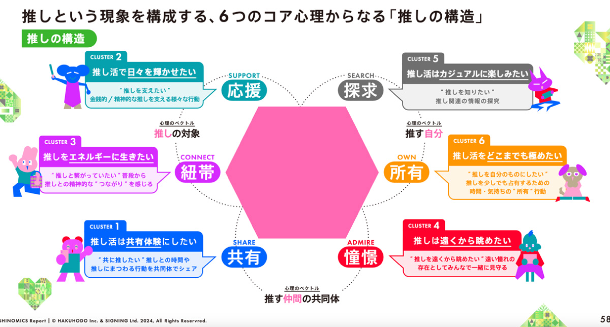 南:推し活をテーマにした企画を起案するとき、どの感情を捉えたいのか、ということをこのレポートを見ながら議論してもらえるとすごくいいと思います。今回は「応援」する感情を取りにいくのか、「共有」する感情を取りにいくのか、いや、ガチ恋勢の「所有」欲を取りにいくのか。それをクリアにしないと中途半端なコラボができあがって終了という結果になりかねないので、そのための戦略的なツールとして活用してほしいですね。