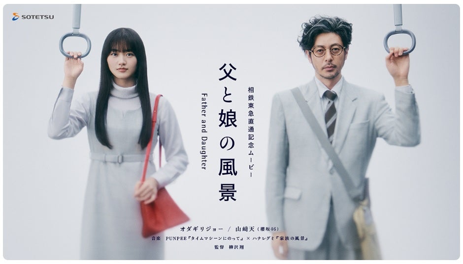 小学生から高校卒業までの12年間、相鉄線の同じ車両で通勤通学する父娘を主役に、親子の距離の変化をワンカットで描く。主演のオダギリジョーさんと櫻坂46・山﨑天さんを含め、父役25人と娘役25人のキャストが時間差演技で関係性の変化を演じる。車両美術25台を人力で動かし、電車の蛇行を再現しながら父娘の心情の揺らぎを描く。車窓の光も人力で再現し、電車の走行と時の流れをエモーショナルに演出。音楽は、ハナレグミの『家族の風景』をサンプリングし、PUNPEEの『タイムマシーンにのって』を再解釈。「家族」と「時間」をテーマにした2つの名曲が連なることで、映像のテーマにシンクロした楽曲となった。