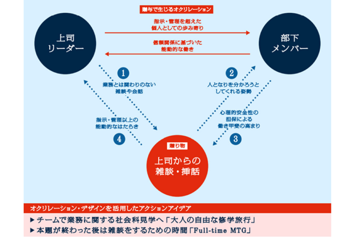 自分のことを知るために時間を使ってくれると感じれば、自然に信頼関係が生まれ、指示されるもの以上の仕事をしようというポジティブな感情が生まれるはずです。対話のなかの雑談、挿話というちょっとした要素が「時間」の贈与になり、それによって従業員とのオクリレーションが成立すると考えています。