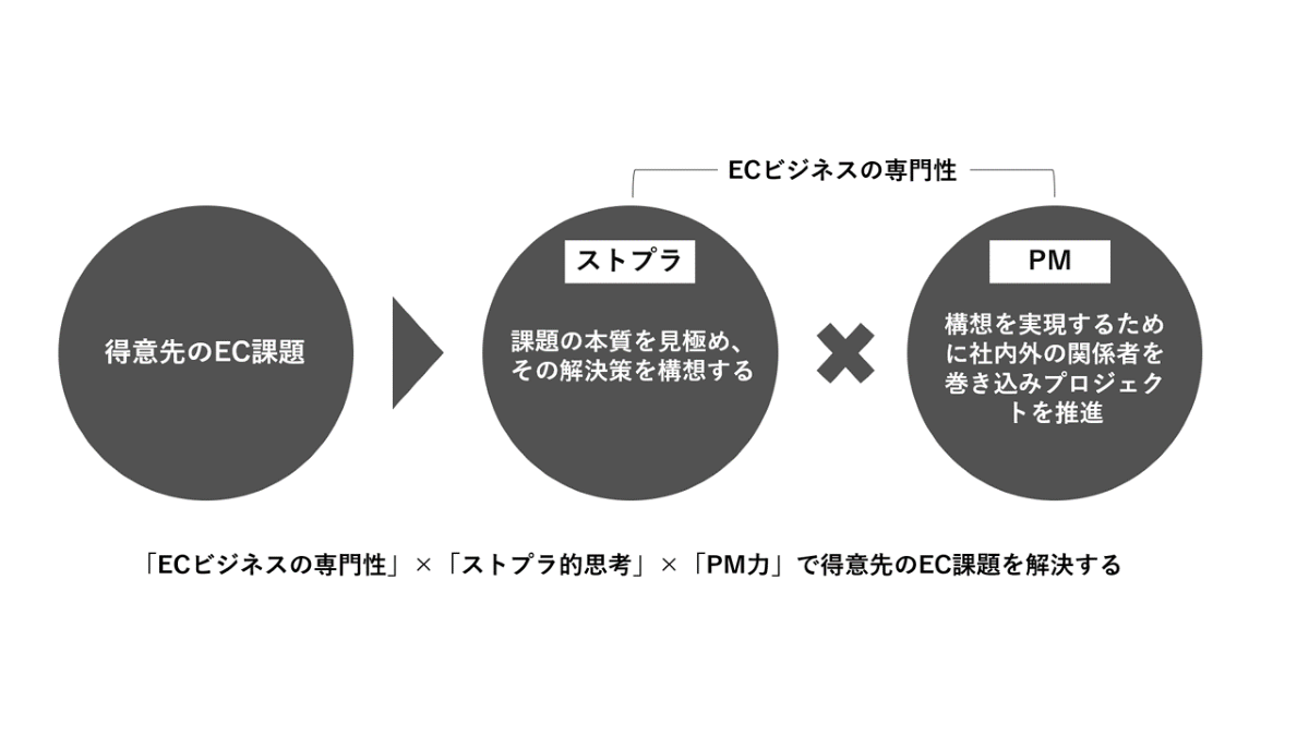 2つ目は新規事業の立ち上げを経験しているということ。ECの構築にもいちから携わってきた経験を踏まえ、お客さまが目指しているサービス体験を実現するために本当に必要な仕組みは何か?という視点で提案できるというのが強みです。新規でECを立ち上げるクライアントさまにも、適正なコストで適正なシステムをご提供することが可能です。