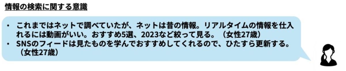 前回の議論でもあったようにWEBで検索するよりも、まずSNSや動画サイトでチェックするという行動が当たり前になっています。他にもショート動画を見ているなど、編集された簡単に理解しやすい情報、いわゆる「処理流暢性が高い」情報を好んでいると感じる発言が複数ありましたね。