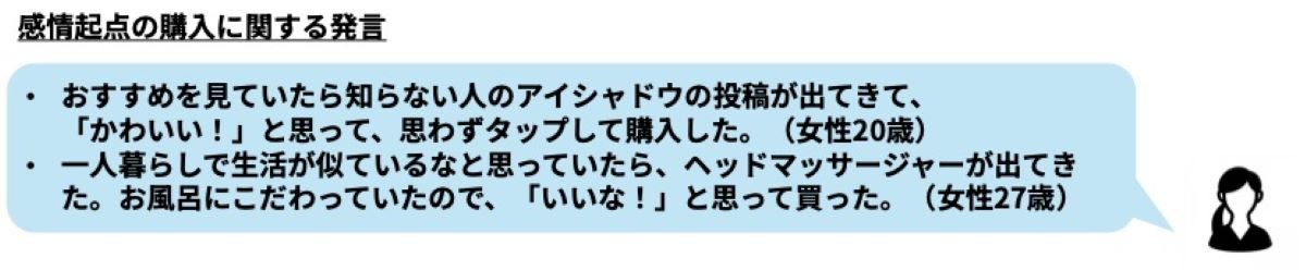 そうですね。SNSや動画はわかりやすさだけでなく、例えば、SNSを流し見する中で、たまたま自分の「好き」に合致するものが目に入って「かわいい!」「ほしい!」と感情が動いて購入につながるといったような、自分の感情を強く刺激する装置にもなっていました。