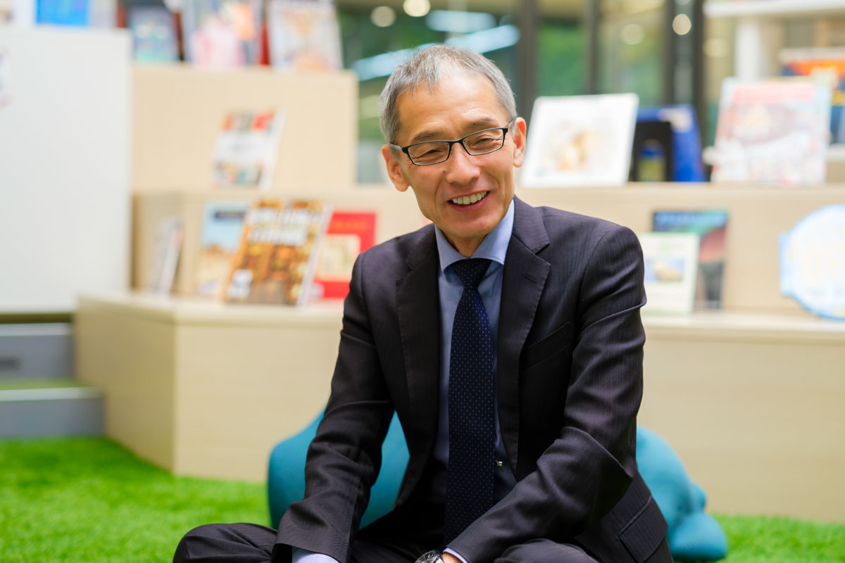 ここは「ラーニングコモンズ」と呼んでいて、書架エリアと複数のラウンジがあります。2022年に建てたSTEAM棟2階に位置しており、上下のフロアにクラフト・ラボラトリーやサイエンス・ラボラトリーを設けています。校舎のしつらえや演出などの環境づくりも、学校がどんなことを大事にしているか、というひとつのメッセージですね。