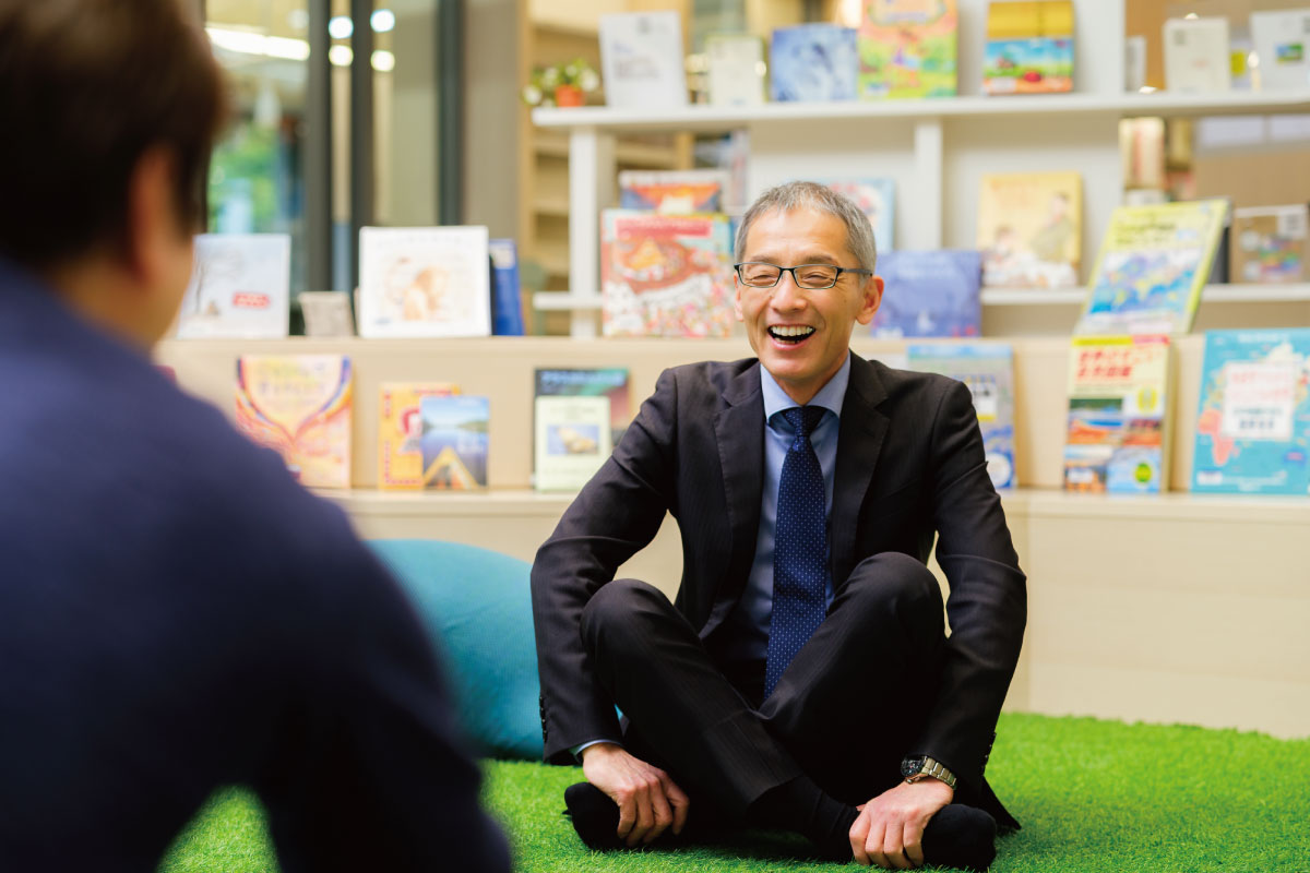 まさか、あぐらで車座になってお話をうかがうとは。こんな空間がライブラリーの真ん中にあるなんて、とても開放的ですね。