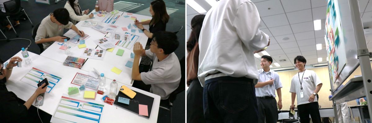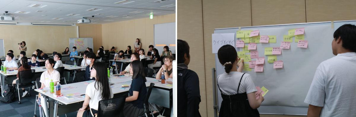 その後さっそくチームワークに取り組みます。はじめに、それぞれが持つ「居場所観」を整理。ポストイットを活用して、「自分にとっての居場所」と「その場所を居場所と感じる理由」についてチーム内で共有しました。