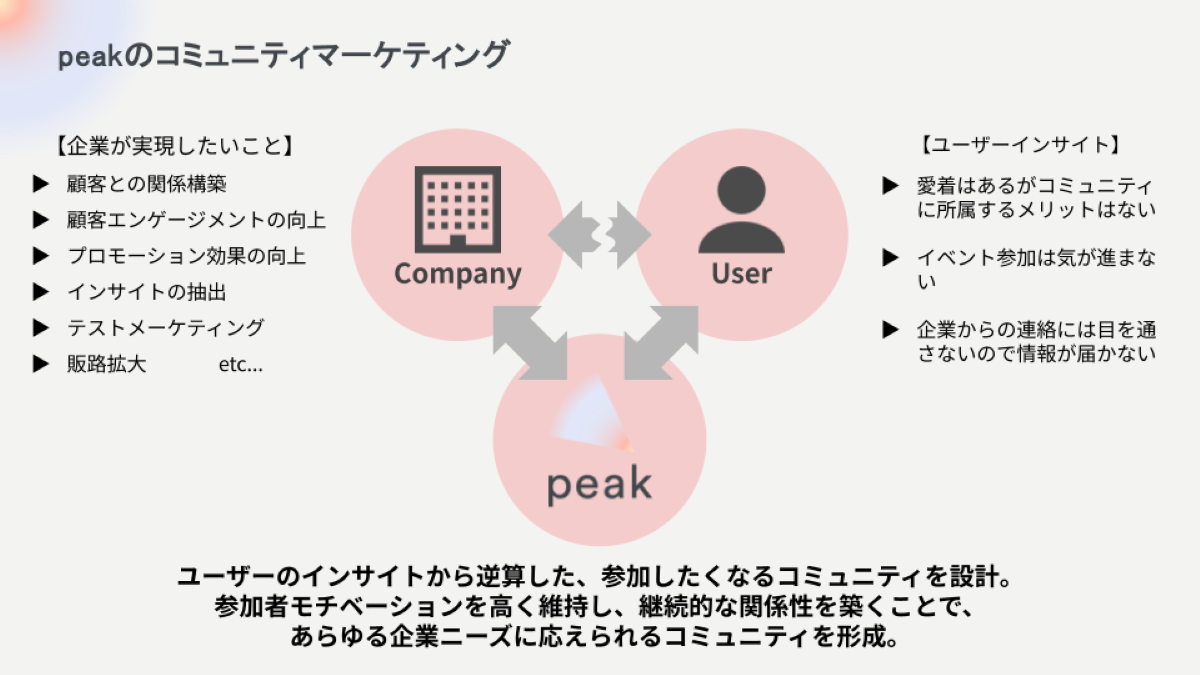 そこから着想を得て生まれたPEAKの事業のひとつに、コミュニティマーケティングがあると思います。まず、お二人から概要を解説してもらえますか?