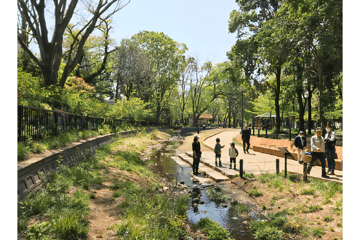 その取り組みの中で、善福寺公園にある放置された水路を再生し、湿地が広がる原風景を取り戻そうという話があがり、地域の方と一緒に模型を作って水路再生のイメージを共有したり、子どもたちに「夢水路設計図」という絵を描いてもらって杉並区長にプレゼンしたところ、実際に杉並区が事業化してくれることになりました。2018年末に川開きを行いましたが、特にコロナ禍では地域の方々の癒しの場になったようです。