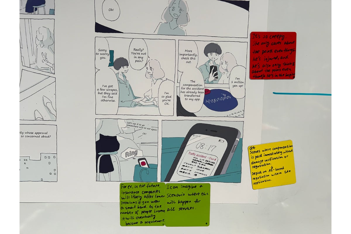 このプロジェクトではマンガ形式を採用し、親しみやすいアプローチでAI倫理についての議論を喚起しています。皮肉や驚きを織り交ぜた未来社会の描写が、現実と重なる一面を持ちながらも、不思議な未来像を提示することで、誰もが気軽にAI倫理を考えるきっかけを作っています。