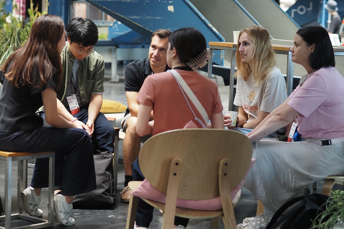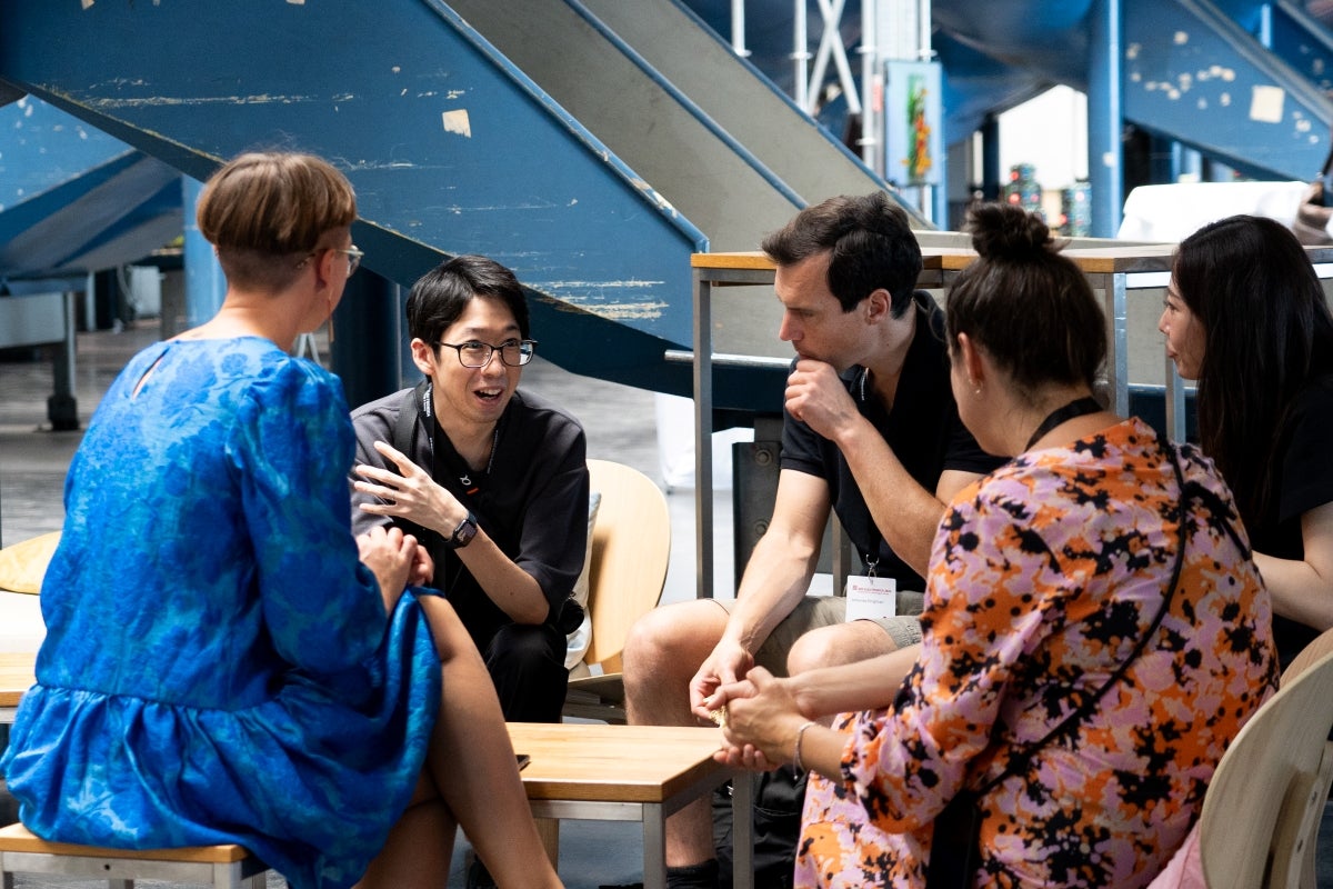 参加型展示に加え、アーティスト、科学者、活動家を招いたカジュアルな朝食会形式のネットワーキング・イベントも開催しました。この場では、AI SPECの『1:nの蕩揺』を題材に、参加者同士が自由に意見を交換しました。特に、文化圏ごとのAIに対する受容度や倫理観の違いが議論の中心となり、新たな視点やインスピレーションが生まれる場となりました。カジュアルな雰囲気の中で交わされる意見交換は、専門家間の交流を超え、未来のAI倫理について新しいアイデアが次々と芽生える時間となりました。