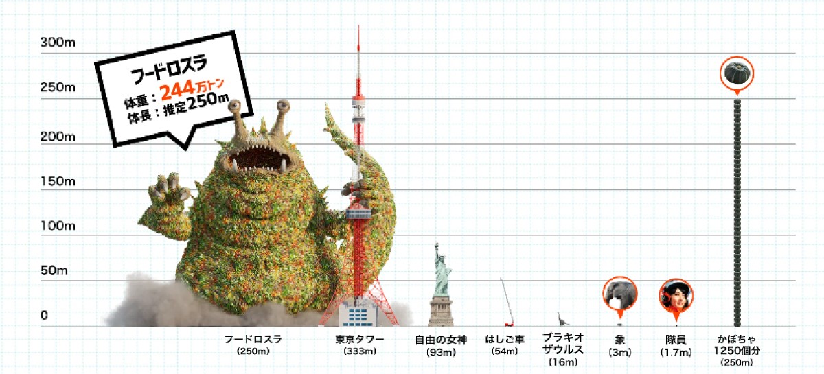 日本の家庭における、年間約244万トンにも及ぶフードロスについて周知し、その解決を呼びかける味の素(株)のプロジェクト。家庭から出る廃棄食品から生まれた巨大怪獣「フードロスラ」を撃退することで、フードロスのない地球を取り戻すことを目指す。