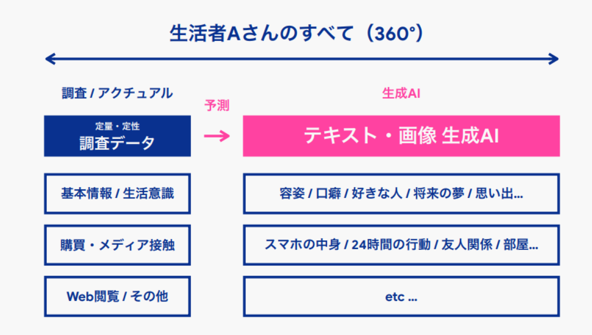 こうすることで、根拠が不明確なブラックボックスの情報を起点としたものではなく、リアルなデータを軸としたバーチャル生活者を作ることができるのです。