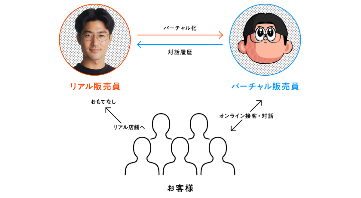 バーチャル販売員はイラストや3Dモデルなど、企業ごとのニーズに応じたカスタマイズが可能です。私たちの考え方としては、すべてをバーチャル化するのではなく、リアルとバーチャルを融合した「ハイブリッドな顧客体験」を創り出していくことを重視しています。