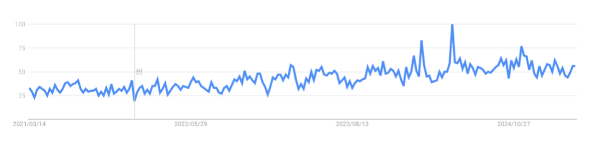 実際にGoogle トレンドを見てみると、「ハラール」の検索数がここ4年間でじわじわと伸長していることがわかります。