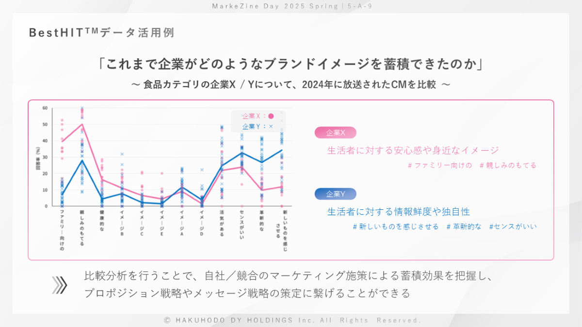 「同じカテゴリーのCMでも企業毎に訴求目的が異なっており、それぞれの企業が独自のブランドイメージを確立していることがデータから読み取れます。こうした知見を活かすことで、より効果的な広告施策を実施できます」(竹村)