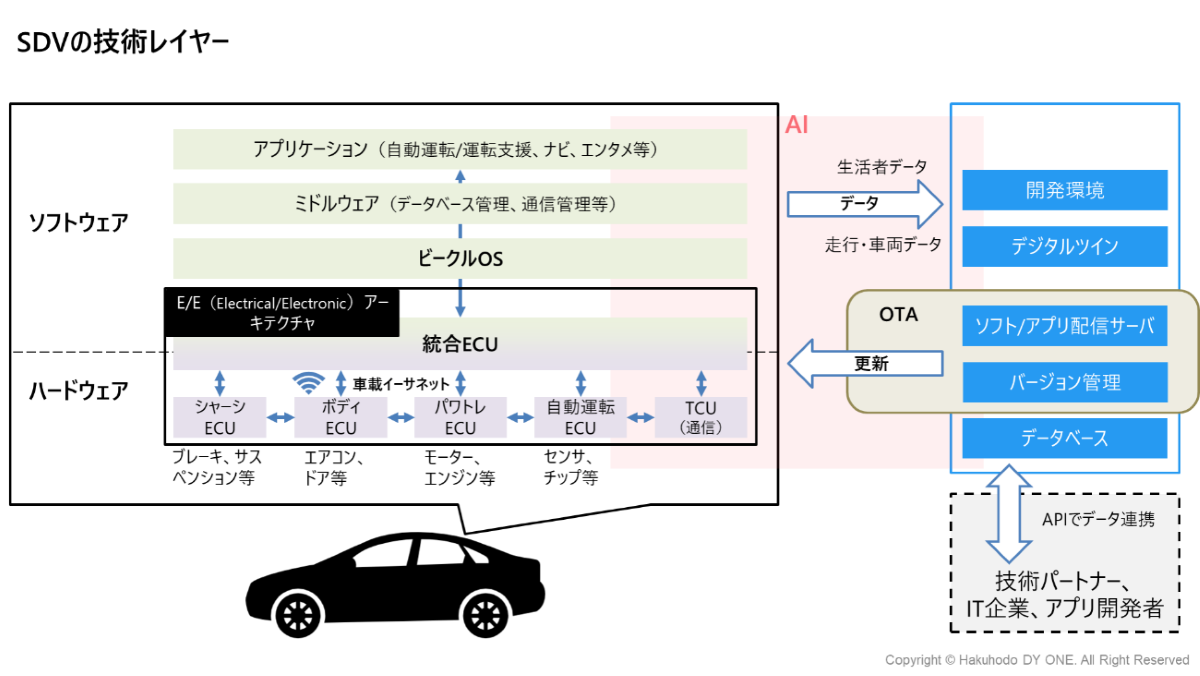 Software Defined Vehicleの略で、日本語にすると“ソフトウェアで定義される自動車“となります。