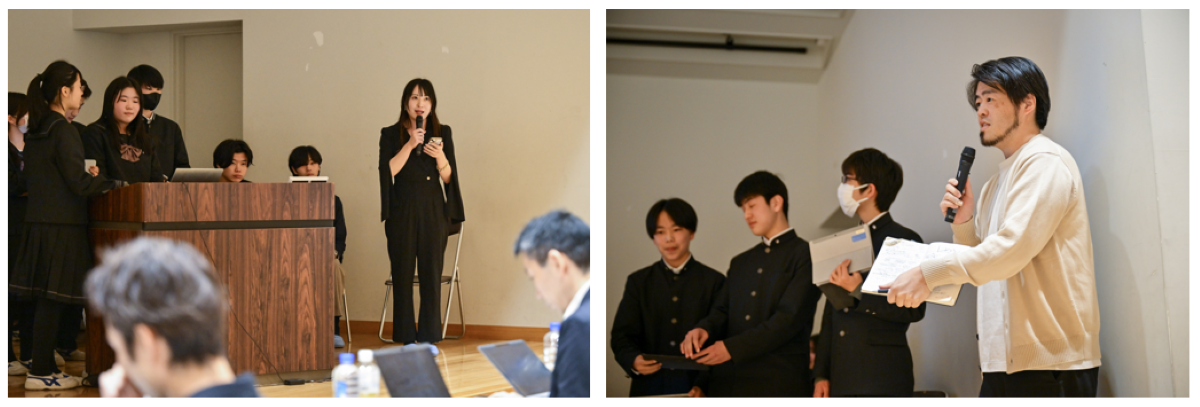 各チームの発表後には、担当である博報堂のクリエイターよりそのアイデアの推しポイントが述べられます。「子供と両親双方の視点で機能や使い勝手まで考慮されたサービス」「中学生らしい面白い着眼点が活かされている」「実際の広告でも使われるリアルな手法を考案できている」等、審査員に向けて生徒たちのプレゼンを後押ししました。